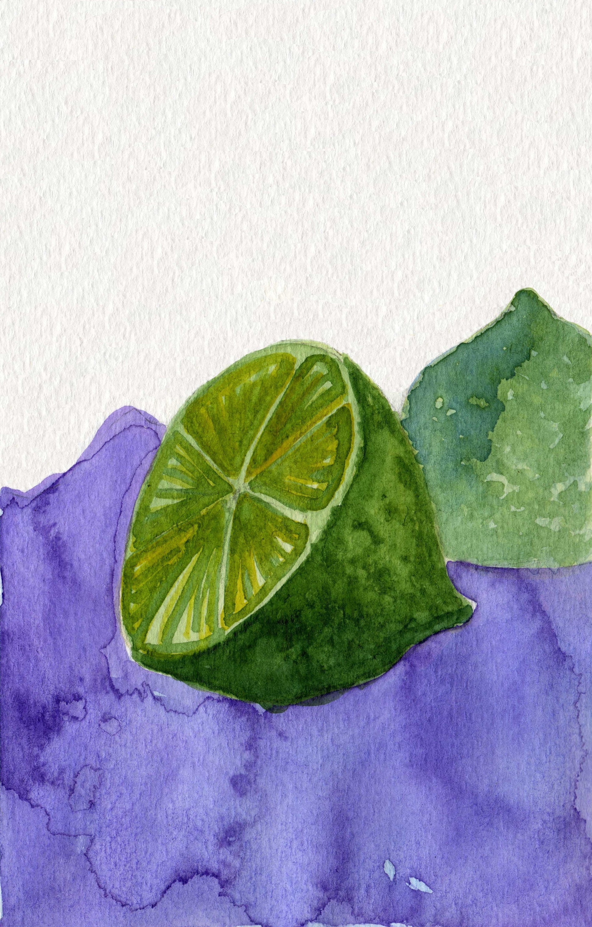 Lime Green Purple PRINT of Watercolor Painting, Fruit Illustration, Still Life, Wall Art for Kitchen and Dining Room, Simple Citrus or Lemon